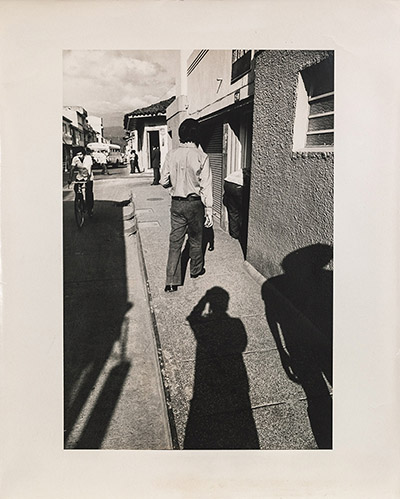 La exposición reúne cerca de 60 obras, todas ellas de la colección privada de José Darío Gutiérrez, y toma el título de una de las obras expuestas de Camilo Lleras. Este es el único artista conceptual colombiano que se centró exclusivamente en la fotografía y del que anteriormente se ha expuesto muy poco, por eso el comisario insiste en la importancia de su presencia en la muestra. Lleras abandonó la fotografía al mismo tiempo que Jaime Ardilla se retiraba de la escena artística y, ambos, se especializaron en astrología. Según comenta el comisario, al parecer fueron excelentes astrólogos; a ello se dedicaban por la mañana y por la tarde a jugar al bingo. Pero antes de eso dejaron interesantes obras como el autorretrato que, de una manera u otra, ambos protagonizan -izquierda-. La figura que aparece de espaldas es la de Ardila, la sombra corresponde a Lleras y él es quien toma la foto. «La sombra de Lleras es, simbólicamente, el cuerpo de Ardila», indica la cartela del autorretrato. Detrás de esta obra, que debate sobre la identidad y la autoría, hay una curiosa historia sobre la posibilidad de participar en una exposición en la que Lleras había sido aceptado pero para la que Ardila ya había superado la edad fijada. Lleras se enfrentó en más ocasiones al género del autorretrato, para el que le hace aparecer como un hombre brillante (abajo) y que se inspira en Rene Magritte utilizó un truco en el revelado. Su reflexión está cargada de ironía y humor.