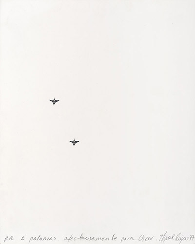 Miguel Ángel Rojas constituye un buen ejemplo de ese replanteamiento de la representación que agita buena parte de estos trabajos conceptuales. Realizó una serie a partir de imágenes eróticas: las trataba, aislaba y cambiaba la escala al mínimo de forma que no era posible identificar ese origen, a veces pornográfico, en dos palomas al vuelo.