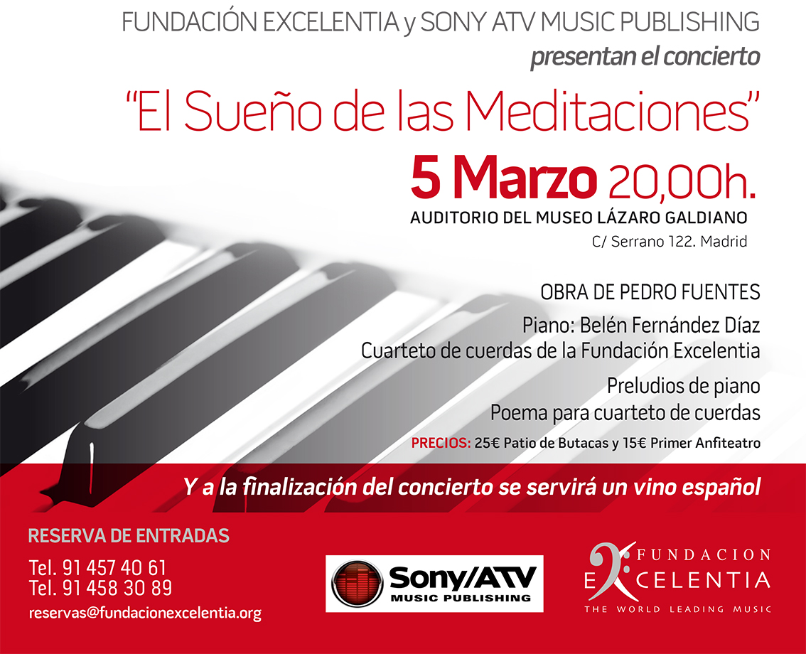 El 5 de marzo la Fundación Excelentia y Sony ATV Music Publishing celebrarán en el auditorio del Museo Lázaro Galdiano de Madrid el concierto El sueño de las meditaciones del compositor y artista plástico Pedro Fuentes