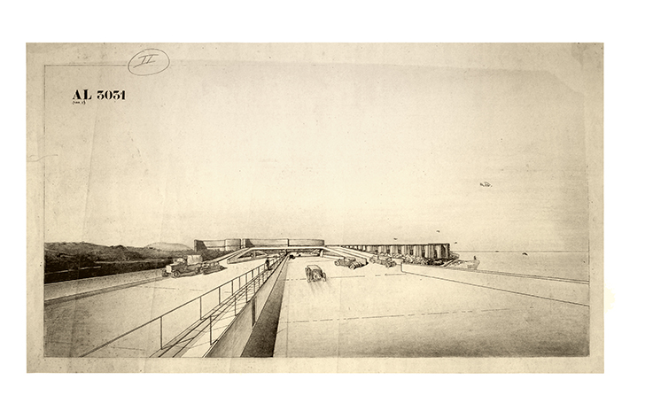 Perspectiva de la autopista elevada, Proyecto B del Plan Obus, Argel, por Le Corbusier, 1933-34 © FLC/ADAGP.