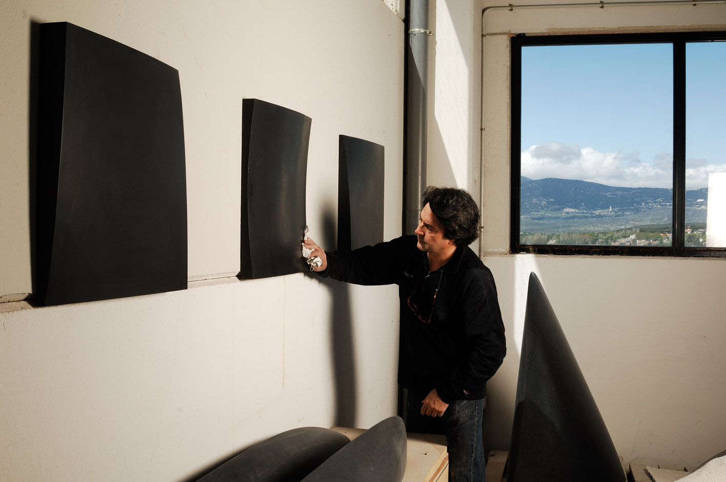 Juan Asensio en su taller. Todas las imágenes, cortesía de la galería Elvira González.