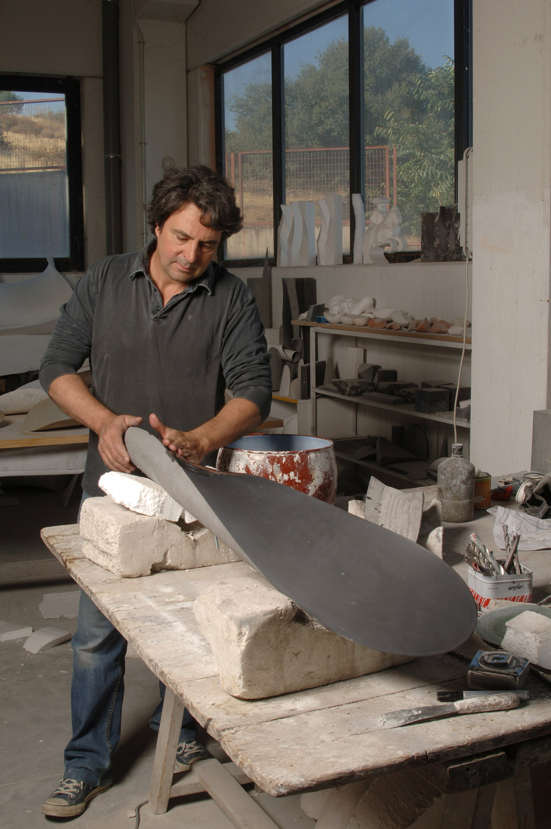 RESPUESTA: Mi formación, aunque autodidacta, fue en cierto modo bastante clásica. Empecé por aprender a modelar, hacía retratos, estudios de anatomía… casi como en cualquier escuela. Cuando algunos de esos trabajos los pasé a piedra me di cuenta de que ese material tenía unas posibilidades plásticas mucho más interesantes. Inmediatamente comencé a realizar una serie de obras abstractas casi empujado por el potencial que había descubierto.