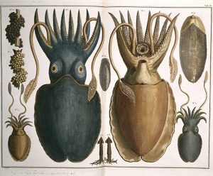 Calamar gigante, Albertus Seba, Locupletissimi Rerum Naturalium Thesaurus, Vol 3, 1759.