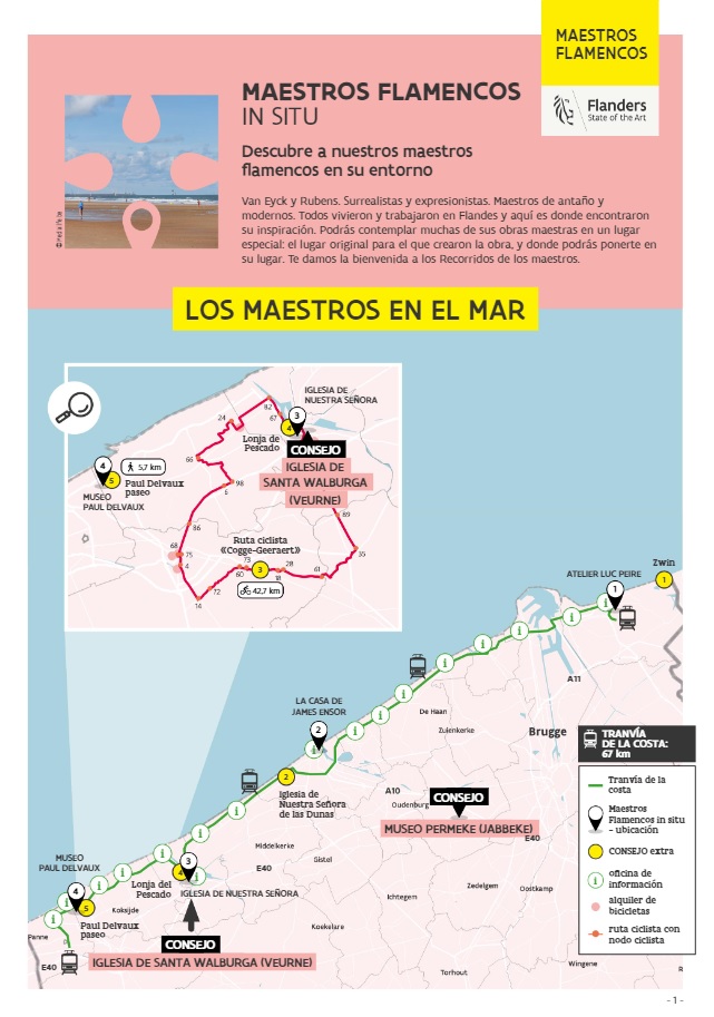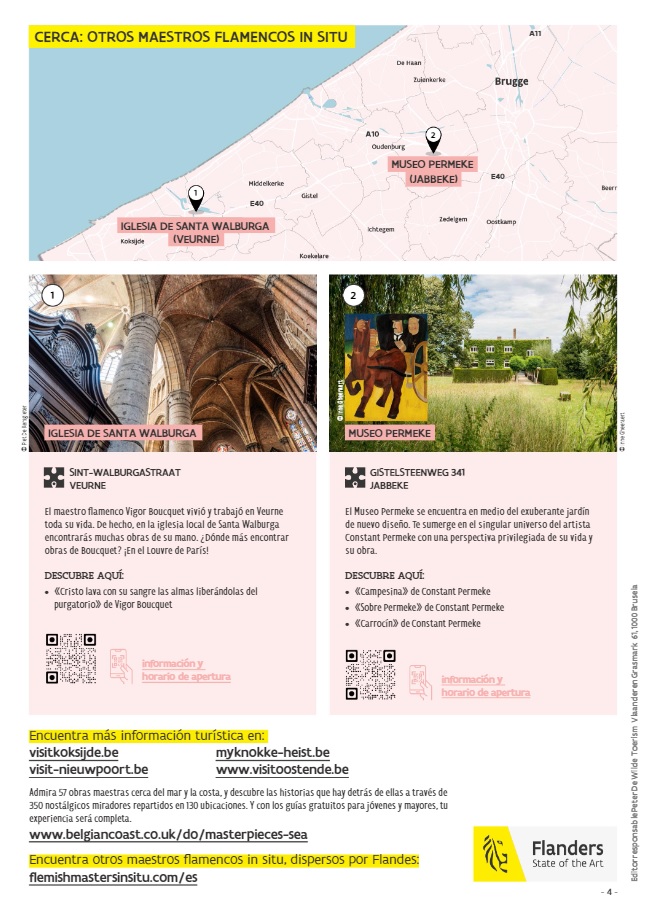 Bajo el título “Maestros Flamencos in situ”, Turismo de Flandes ha elaborado un conjunto de mapas digitales –muy fáciles de descargar– e itinerarios que sirven de guía al visitante para poder apreciar esas obras en su localización original. Situarse donde debió de ubicarse el artista, vislumbrar la luz y el sitio exacto que él debió ver al ejecutar su creación supone, sin duda, una experiencia única, puesto que brinda la posibilidad de acercarse al máximo a la esencia de una obra de arte y al alma de un lugar.