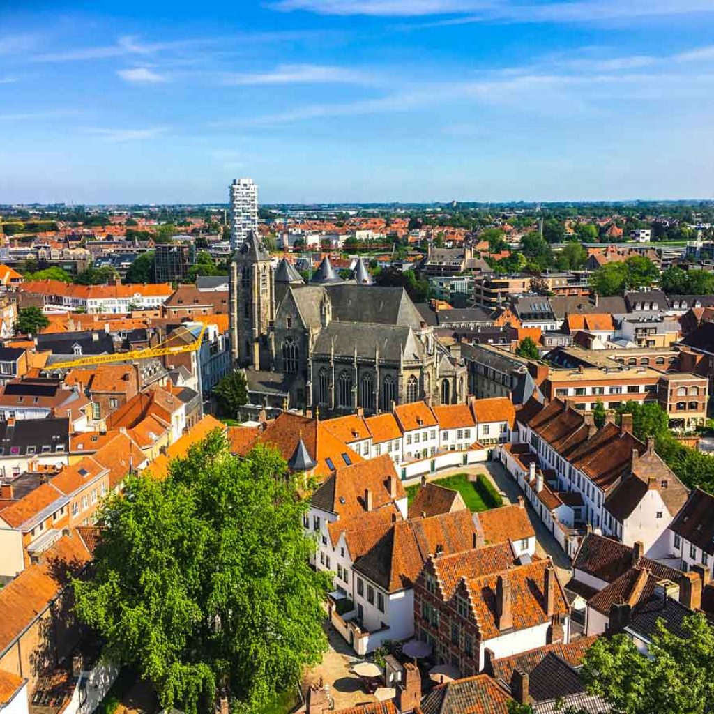 Zona comercial de Cortrique y Vista desde la iglesia de San Martín ©Visit Kortrijk.