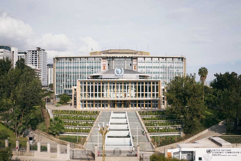Diseñado por el arquitecto italiano Arturo Mezzedimi y finalizado en 1961, el Africa Hall fue concebido como un espacio diplomático para las naciones del continente y como sede de la Comisión Económica para África de las Naciones Unidas. Entre sus muros se fundó en 1963 la Organización de la Unidad Africana, precursora de la Unión Africana. El edificio fue rápidamente reconocido como uno de los hitos definitorios del movimiento moderno africano, reflejando el compromiso de Mezzedimi con la claridad funcional, la apertura simbólica y las amplias vistas panorámicas del paisaje de Addis Abeba. Su interior cuenta con mármol de Carrara, piedra procedente de Etiopía y tres monumentales vitrales del célebre artista etíope Afewerk Tekle.